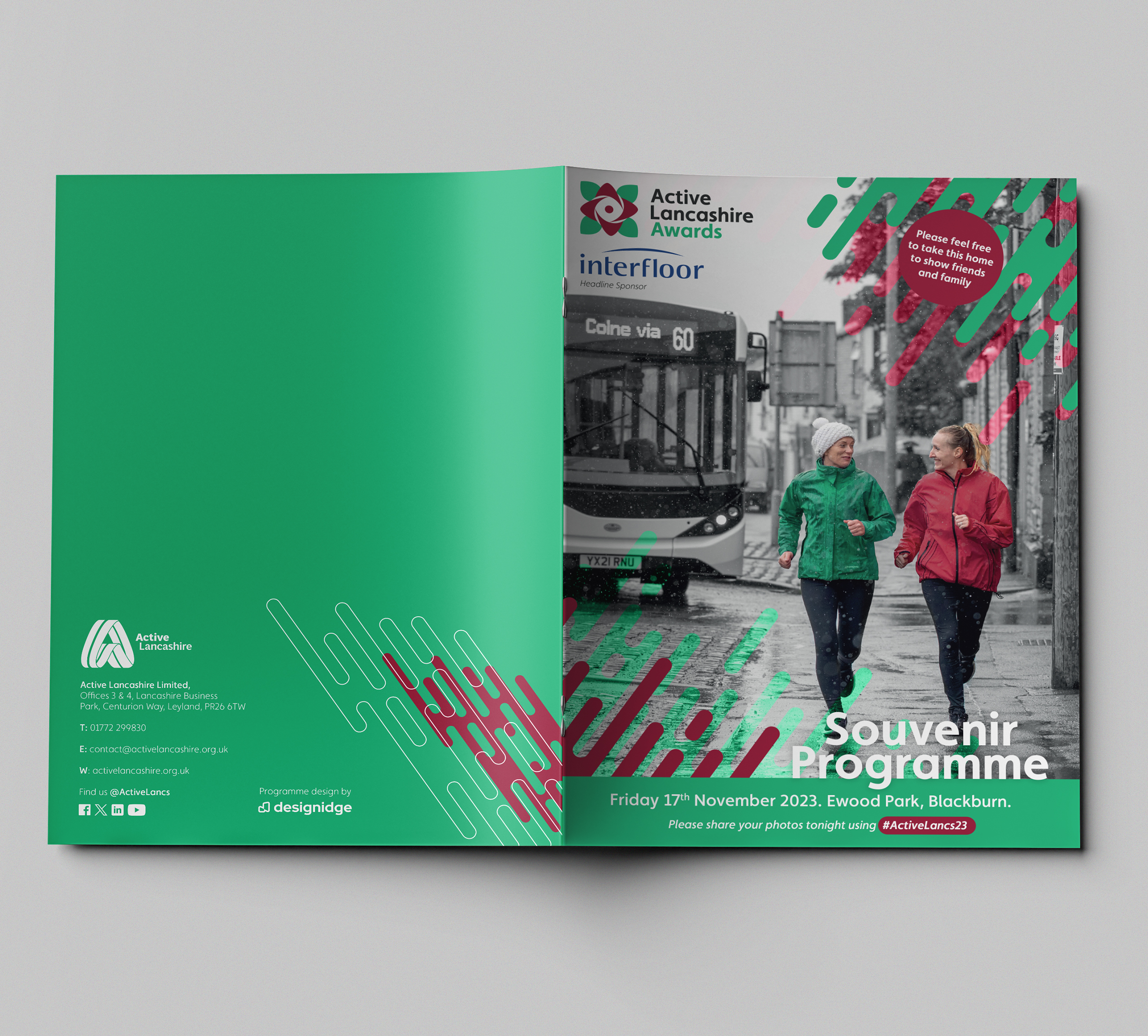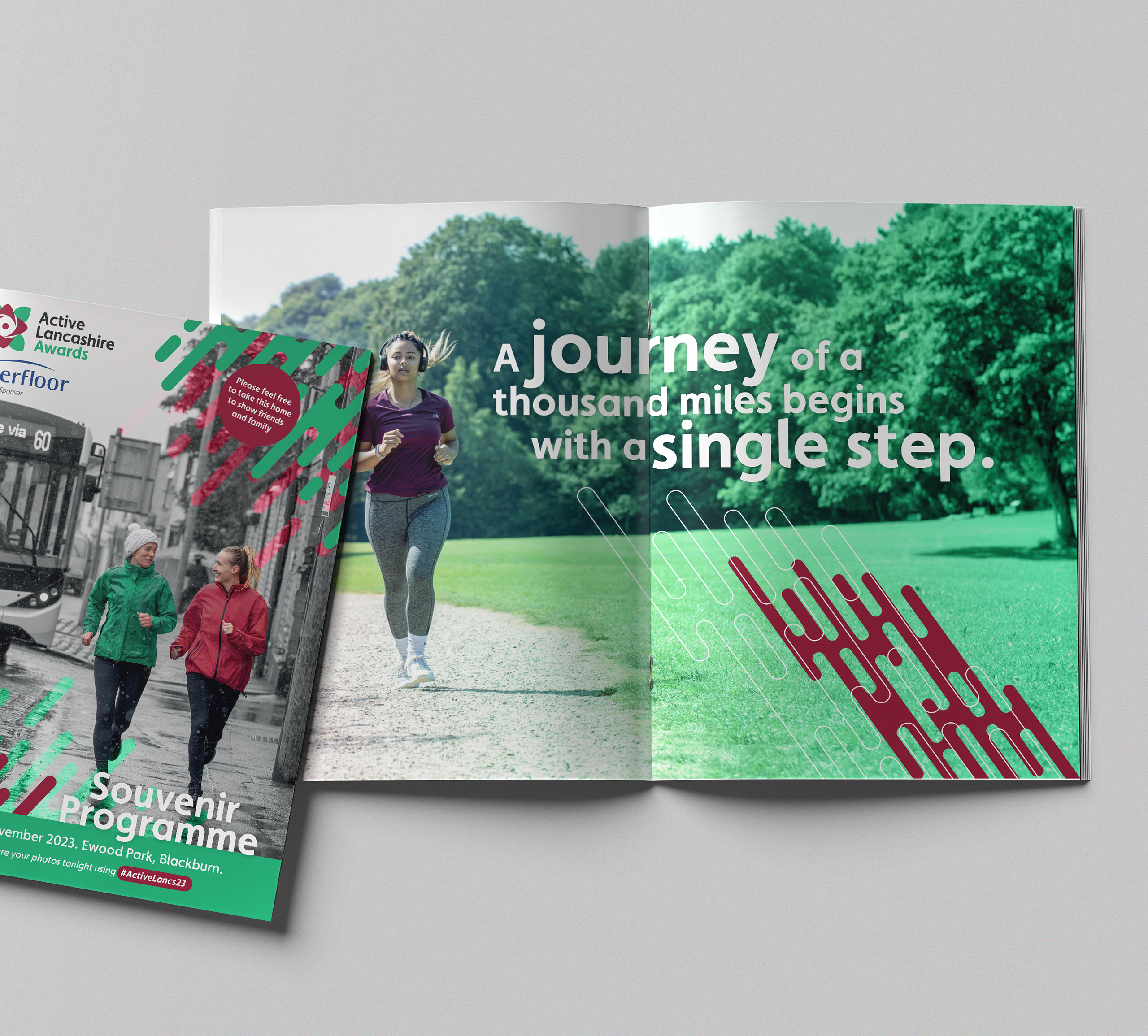 Active Lancashire asked me to create a printed programme for their annual awards evening — an event celebrating the individuals, projects and partnerships making a difference across the region. The programme needed to be functional, well-structured and in line with their visual identity, while still feeling joyful and celebratory.